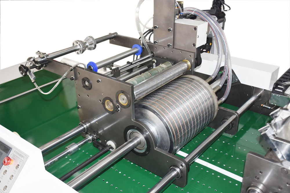 4、涂膠部:涂膠滾筒的橫向于縱向分別由伺服電機(jī)驅(qū)動(dòng),可不停機(jī)直接進(jìn)行雙向調(diào)節(jié),涂膠部還具備空張避膠功能,避免膠水接觸到皮帶,減少因?yàn)榭諒埗l繁停機(jī)清洗皮帶的麻煩。