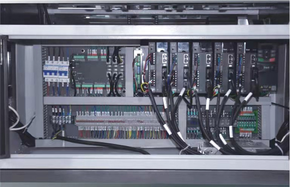 8、電氣系統(tǒng):整機(jī)采用全伺服運(yùn)動(dòng)控制,各種電氣元件、檢測(cè)開關(guān)均采用日本、臺(tái)灣、法國(guó)、德國(guó)等公司產(chǎn)品。